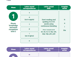 Download this sequence of letter–sound correspondences and phonics skills. Minor updates align the progression with our new lesson packs.