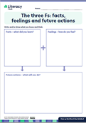 Have students write and/or draw to fill in The three Fs graphic organiser.