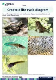Have students summarise the life cycle of a frog using this printable worksheet. Have them cut out the images and stick them onto a second sheet of paper to form a cycle. Students can add a title, labels and arrows.