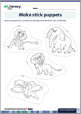 Print the Make stick puppets worksheet.